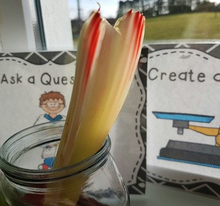 Experiment 1: We put sticks of celery into water containing food colouring. We found that the celery changed colour so we came to the conclusion that the celery drank the water and plants need water to survive!